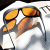 A Soft Touch, jet-black chassis is paired with a precisely regulated polycarbonate UV filtering system. The non-polarized Polaré hazelnut filter is a contrast enhancing absorptive tint that allows 18% visible light transmission, while blocking 100% of lightwaves up to 410 nm, including all damaging UVA/UVB rays. The filter is designed to absorb 98% of blue light and HEV (High-Energy ultra-violet light) that can cause irritating eyestrain and fatigue. Second in size to the Aviator, the Pilot accommodates large prescription glasses whilst providing maximum coverage and comfort.