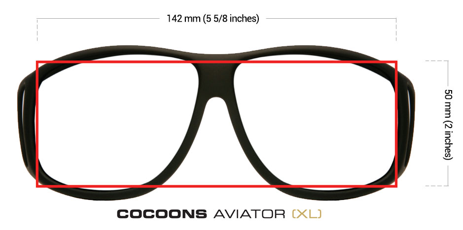 Cocoons are designed to be worn over your prescription glasses. To achieve the perfect fit, it’s important you find the size that most accurately fits over your eyewear. Measure the full width and height of your glasses at the widest points.