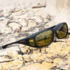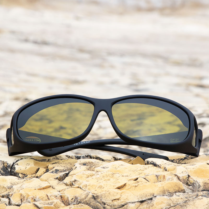 Designed to fit over prescription glasses measuring less than 130mm (5 1/8 inches) in width by 36mm (1 7/16 inches) in height.