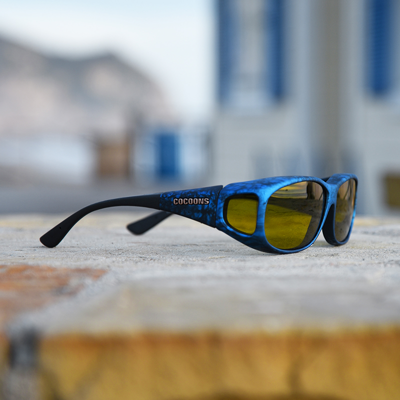 Waves of electric blue wash around our bright yellow polarized lens system. With a unique highlighting ability, our true yellow tint is perfect for use in low light conditions such as dawn and dusk. The electric appearance of the ink finish is incredible when paired with a yellow lens tint that transmits a maximum amount of light at 100% polarizing efficiency. These low profile Cocoons have been made famous by the sleek, unisex styling.