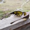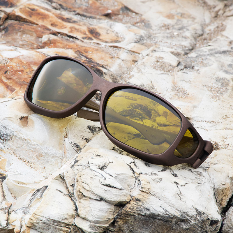 The wet sand chassis cleverly accentuates the bright yellow polarized lens system. With a unique highlighting ability, our true yellow tint is perfect for use in low light conditions such as dawn and dusk. The coastal inspired, wet sand frame finish is a popular earth-tone and the yellow tint transmits a maximum amount of light at 100% polarizing efficiency. Deceptively fusing the practical functionality of a larger fitover with contemporary fashion, the Style Line accommodates large prescription glasses without sacrificing aesthetics.
