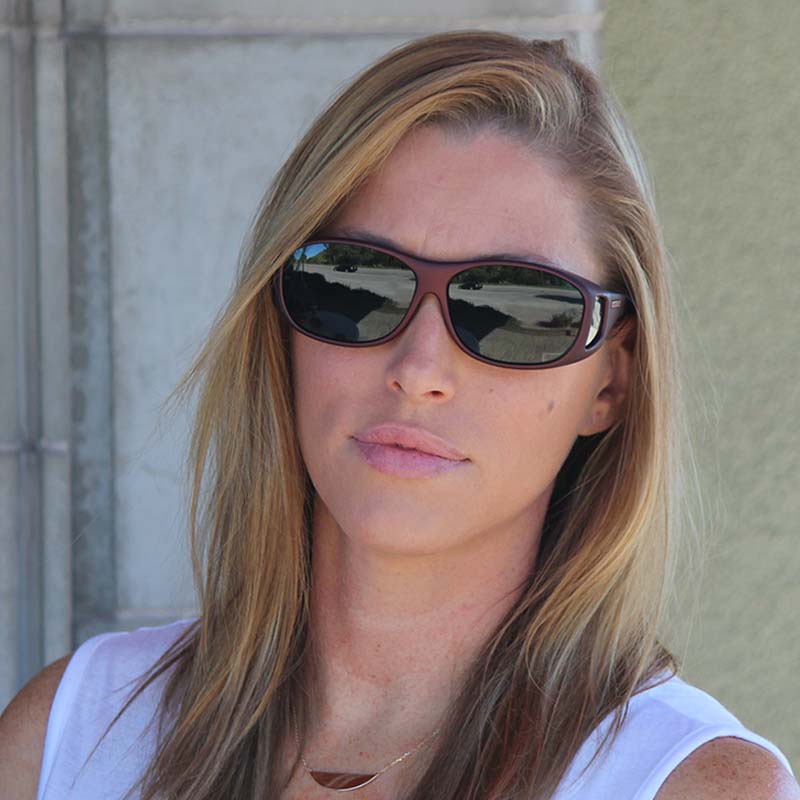 The royal burgundy Soft Touch frame finish looks fantastic when paired with our gray polarized lens system. The Polaré gray tint is one of the most popular choices as it provides true color representation while eliminating glare and harmful UV rays. The gray on burgundy combination is the perfect choice for a sophisticated, fashionable look. A truly iconic fitover design, the patented Slim Line is a mid-sized fitover with a definitive unisex styling.
