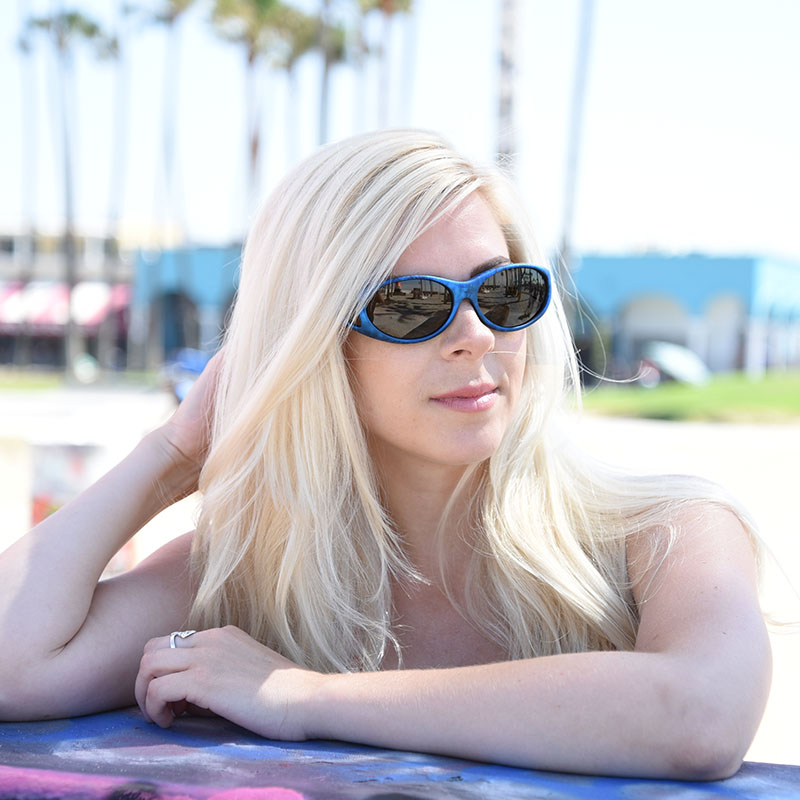 The electric ink Soft Touch frame finish looks incredible when paired with our gray polarized lens system. The Polaré gray tint is one of the most popular choices as it provides true color representation while eliminating glare and harmful UV rays. The gray on ink combination makes a definitive fashion statement. The smallest fitovers in the world are perfect for petite prescription frames and for children.
