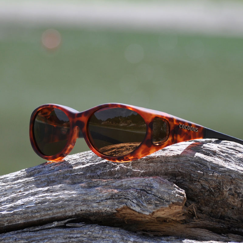 Incorporating modern Soft Touch technology with a classic tortoiseshell pattern, these Cocoons are perfectly complimented with a polarized amber lens system. Scientifically engineered to cut through harsh glare, the amber lens increases contrast and improves depth perception. Extremely popular for use on or near the water, amber is also a great choice for driving. The smallest fitovers in the world are perfect for petite prescription frames and for children.