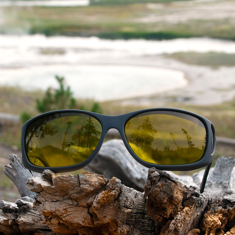 A neutral slate Soft Touch chassis provides the canvas and contrast for our bright yellow polarized lens system. With a unique highlighting ability, our true yellow tint is perfect for use in low light conditions such as dawn and dusk. The low-key appearance of the slate finish is a proven favorite and the yellow tint transmits a maximum amount of light at 100% polarizing efficiency. Deceptively fusing the practical functionality of a larger fitover with contemporary fashion, the Style Line accommodates large prescription glasses without sacrificing aesthetics.