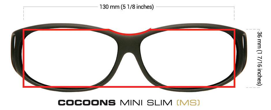 Cocoons are designed to be worn over your prescription glasses. To achieve the perfect fit, it’s important you find the size that most accurately fits over your eyewear. Measure the full width and height of your glasses at the widest points.