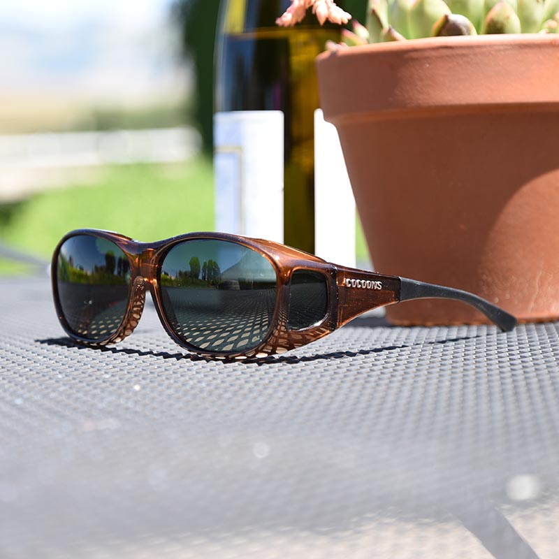 These medium-sized Cocoons fit over a wide range of prescription glasses. The unisex styling of the Slim Line is popular with both men and women. Its clean lines suit most face shapes. The Polare gray lens tint is one of the most popular choices as it provides true color representation while eliminating glare and harmful UV rays.