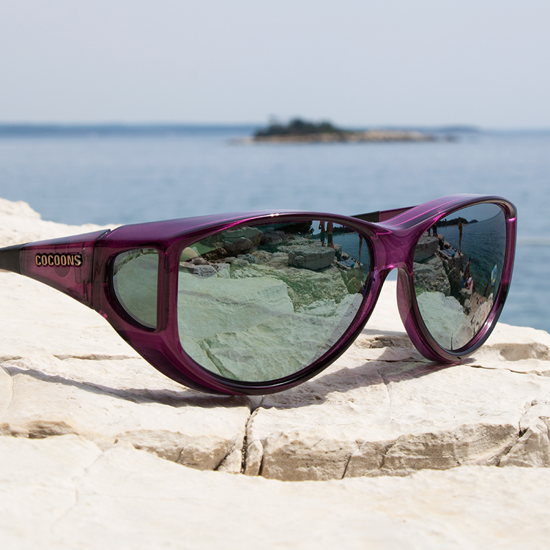 Slip Stream’s classic, cat-eye styling is reminiscent of a golden age of sunglass design. The frames effortlessly fuse this style with the cutting-edge technology, performance and comfort synonymous with the Cocoons brand. Amethyst Cocoons have a brilliance in their translucent finish. The hand-painted artistry gives the frame incredible depth and distinction while remaining deceptively functional, comfortably accommodating larger eyewear while maintaining a chic, polished look. The dark gray, polarized lens system enhanced with a flash silver mirror coat eliminates harsh glare, blocks 100% of harmful UV light, and is highly scratch-resistant. Each pair includes our legendary Cocoons case, a lens Duracloth and the Live Eyewear lifetime warranty.