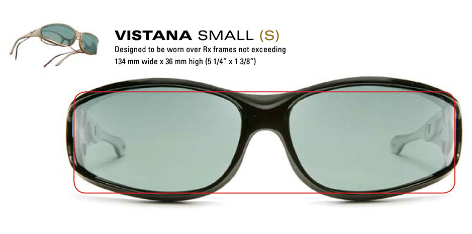 Polarized UV400 – Scratch Resistant – Flex2Fit Temples – Lifetime Warranty-Fits over prescription frames measuring up to 134 mm in width by 36 mm in height 5 1/4 inches in width by 1 3/8 inches in height. Each Vistana includes a soft protective case, lens cloth and limited lifetime warranty.
